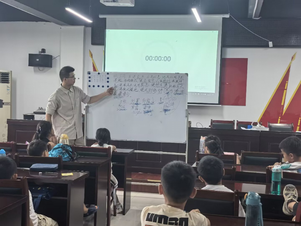 2025年8月13日,安徽中医药大学“青囊万家·未病先防”中医药非遗社区健康促进体系团队来到合肥市新站区磨店街道王圩社区,再次开展七彩假期暑期“三下乡”社会实践特色活动。志愿者何腾蛟、徐帆带领同学们进行"四季养生歌"朗诵和哼唱,志愿者曹敏西主持了"等差数列解药方谜题"益智游戏、志愿者李婷婷、连阳明主持了"《黄帝内经》节气古语朗诵"讲堂,吴雅负责摄像,所有志愿者一起辅导同学们写作业。