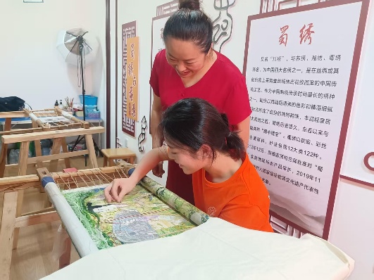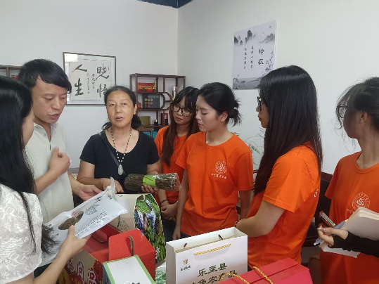 为对接需求,精准锚定设计方向,实践团队对乐至县的特色农业、乡村文化、非遗发展现状做了全面且详细的桌面调研。7月初,实践团队在学院副院长、党委副书记江霞与党委办潘垒昌两位指导老师的带领下,深入乐至农产品公用品牌“乐滋乐味”产品销售中心、中国桑都文化展示馆、陈红英蜀绣工作室、陈毅故里景区、“帅府粮仓”园区开展实地调研。