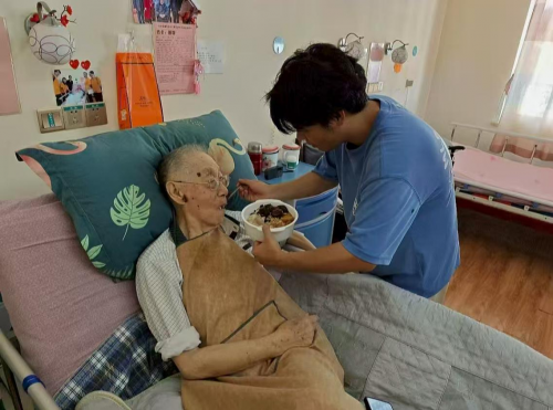 大厅内,爱心是行动的主旨。几位同学正围在餐桌旁为行动不便的老人喂饭:有的同学半蹲在老人身前,一勺一勺将温热的饭菜轻轻送进老人嘴里,时不时停下来用纸巾擦去老人嘴角的残渣;有的同学则俯身在老人耳边轻声交谈,询问饭菜的温度是否合适,耐心倾听老人的需求。喂饭的体贴,语言的关爱,这都让老人们感受到来自志愿者的爱心,老人脸上洋溢着满足的笑容,眼中满是欣慰与暖意。