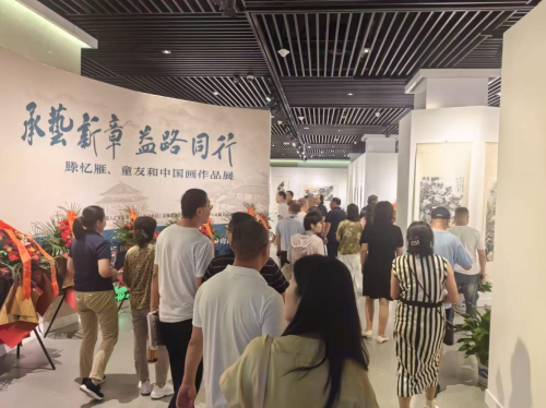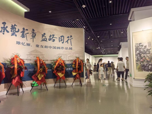 2025年8月22日,"承艺新章,益路同行——滕忆雁、童友和中国画作品展"在芜湖市博物馆隆重开幕。本次展览由粤港澳大湾区机器人产业联盟主办,京衡(芜湖)律师事务所、芜湖市众藏美术馆协办,展览集中呈现了两位当代画家的近百幅精品力作。滕忆雁先生以山水花鸟见长,其作品笔法精微,设色雅致,在传统院画基础上融入现代审美意趣;童友和先生擅长水墨山水与人物,笔墨苍润相济,意境雄浑开阔,展现出强烈的时代气息和个人风格。两位艺术家的作品墨写相映,生动诠释了中国画在当代的传承与创新。