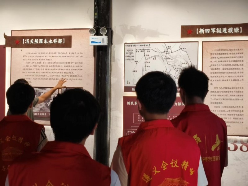 盛夏时节的皖南大地,骄阳似火。实践团首站来到新四军蒲塘作战指挥纪念馆。这座依托革命旧址建立的纪念馆,完整保留了当年新四军指挥部的建筑格局。斑驳的土墙、简陋的办公桌椅、磨损的作战地图,每一件展品都在诉说着那段艰苦卓绝的革命岁月。展馆内详实的史料展示,系统再现了新四军将士在皖南地区开展抗日斗争的英勇事迹。实践团成员认真观摩每一件革命文物,仔细研读每一份历史文献,通过实物史料与历史场景的相互印证,深刻理解革命先辈坚定的理想信念和顽强的斗争精神。