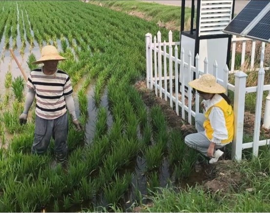 (图为成员与湖熟农民进行稻谷种植进行探讨)