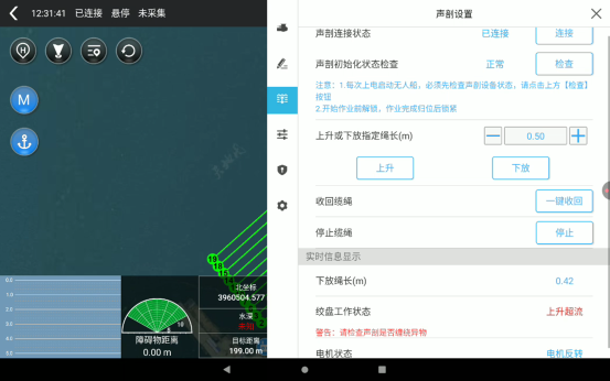 华微6号搭载华测自研自动打声剖装置,与无人船控制系统深度融合,只需轻触遥控器即可一键完成声速剖面仪的下放与回收。这一突破彻底打通多波束测量全流程,无需人工干预即可同步获取声剖数据与水下点云,解决了传统作业中“声剖与点云采集分离”的行业难题。配合触底检测与缠绕检测双智能防护功能,设备在暗礁密布、水草丛生的环境中也能自动识别风险——触底时立即停止放线,缠绕时实时报警并停机,从源头避免设备损坏。