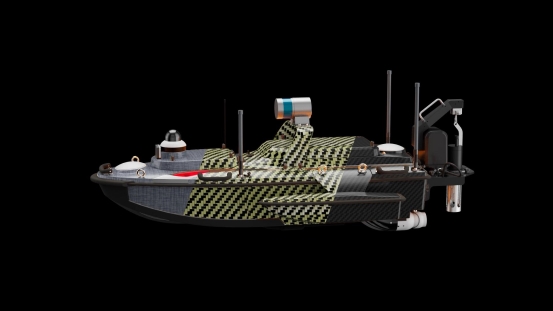 船身采用高强度碳纤维复合材料一体成型工艺,减重30%的同时防护能力提升60%,配合关键部位的三块碳纤维防护板,提升了抗撞能力。船底创新的分布式水冷板设计,即使在40℃高温环境下仍能将中控系统温度控制在安全阈值内,保障多波束、激光雷达等核心设备持续稳定运行。