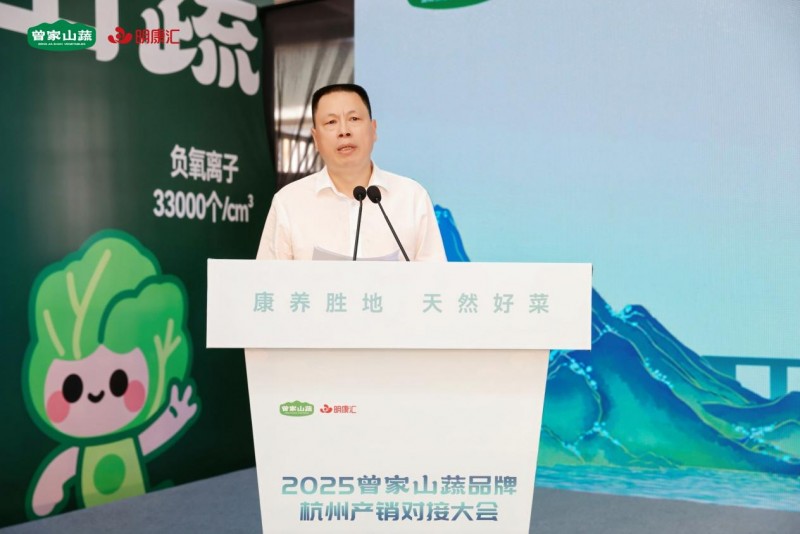 8月22日,由广元市朝天区人民政府主办,朝天区农业农村局承办,明康汇生态农业集团有限公司、杭州蔬菜有限公司协办的“曾家山蔬品牌杭州产销对接会”在杭州勾庄批发市场隆重举行。本次活动以“康养胜地 天然好菜”为主题,旨在进一步深化东西部协作成果,推动“曾家山蔬”区域公用品牌走进长三角市场,助力乡村振兴。来自政府、企业、采购商及媒体的近60位嘉宾共同见证了此次盛会。