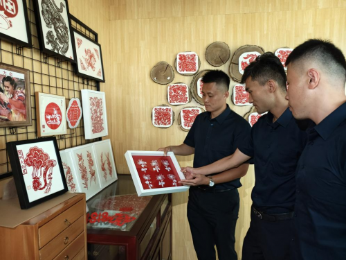 在讲解员的带领下,安全员们首先来到了剪纸艺术展区。精美的剪纸作品以其细腻的线条、生动的造型,展现出民间艺人的高超技艺。“这些剪纸作品看似简单,实则需要创作者具备深厚的功底和极大的耐心,每一刀都饱含着对生活的热爱和对传统文化的传承。