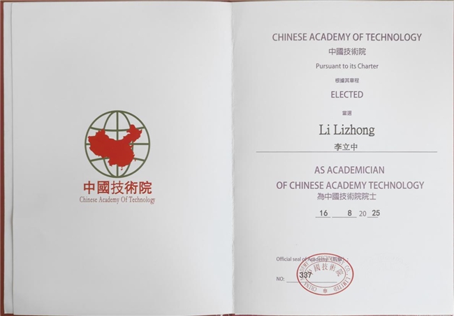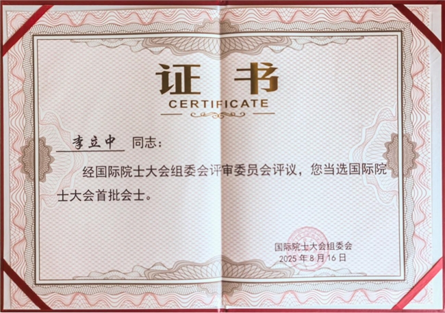 同日,李立中院士正式当选中国技术院院士,并同时当选国际院士大会首批会士,这是对李立中院士科研成就和学术地位的高度认可。李立中院士以其深厚的学术造诣、卓越的科研能力和高尚的品德,赢得了同行们的一致讚誉,成功当选实至名归。