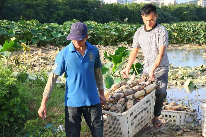 鹤上镇岐阳村莲藕丰收。王至莹摄