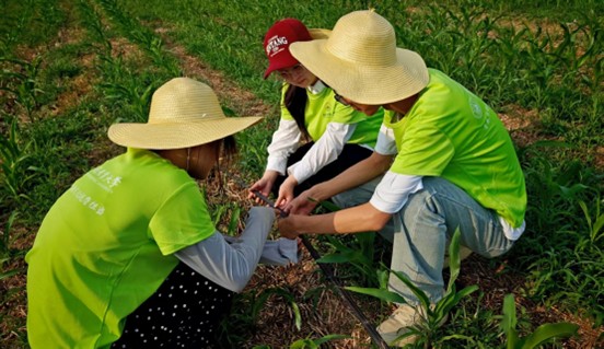 图为团队成员参与滴灌管的维护,如调试水压和清理堵塞的滴孔。 邢嘉琪 供图
