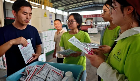 当跟随仝经理走进配药车间,会发现“定制药方”点燃了一份希望:针对台风预警,农技师对症下药,在药剂中添加了吡虫啉,以提前防控病虫害,不仅如此,农技师们还会根据作物不同的生长情况为农户提供专业性的指导。“这一箱刚好用于十亩地,这里是作物医院,我们是农田医生。”王农技师的话,让队员们明白投身农业基层服务不仅需要专业的知识作为技术支撑,更需要对土地的敬畏来作为核心动力与职业初心。晚上,团队有幸邀请到中化现代农业华东大区总经理助理李骏进行访谈。作为安徽农业大学2006届农林经济管理专业优秀校友,李骏与队员们展开亲切访谈交流,从自身经历出发,为大家提供了诸多宝贵的指导与建议,李骏校友的分享将实践升华为职业思考:“基层需要能扛锄头、玩数据、懂市场的复合型人才。”这也是每个农业类大学生都应该追求并做到的。