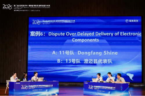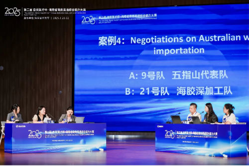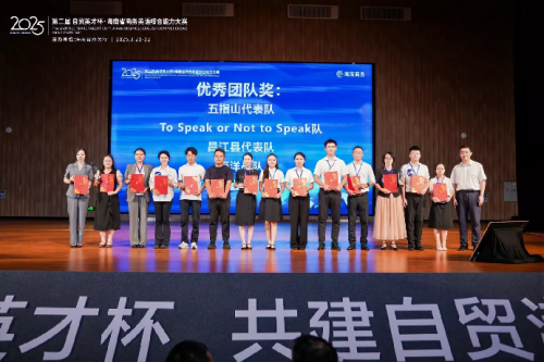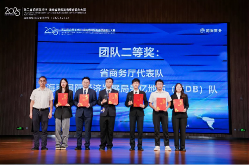 经过紧张的比拼,儋州市代表队获得2025年海南省第二届“自贸英才杯·英语能力竞赛”决赛谈判赛团队奖一等奖;省商务厅代表队、海南国际经济发展局爱亿地币(IEDB)队获谈判赛团队奖二等奖;Team KG(三亚)、陵水县代表队、FTP Navigators自贸港领航员(三亚)获谈判赛团队奖三等奖。