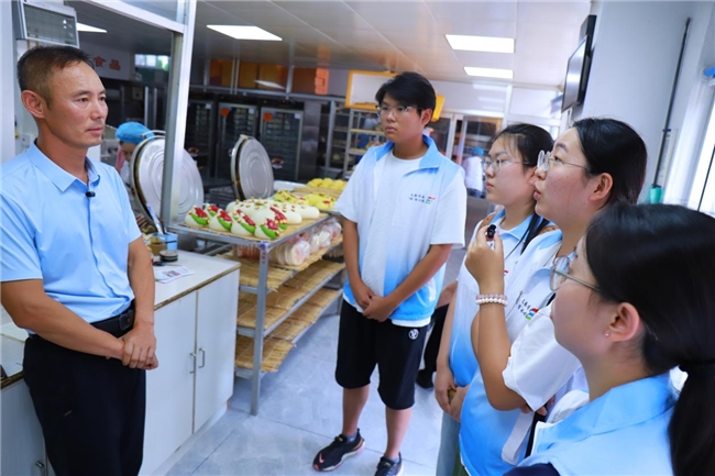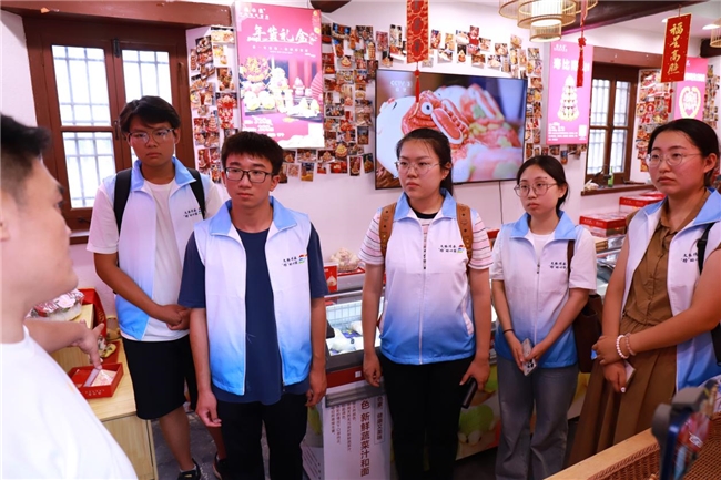 实践最后一站探访了规模化、品牌化发展的老岚馒头总店。学生们系统观摩了花饽饽从选料、和面(特别是老面引子的运用)、揉制、塑形到蒸制的完整流程。严谨的工艺标准、精准的火候把控,处处体现着不容妥协的匠人精神。 虽然未能亲手制作,但流水线上工人专注的神情、娴熟稳定的操作,以及满室浓郁纯正的麦香,都传递出一个清晰信号:规模化生产并未消解传统的核心价值。老岚馒头通过现代管理、品牌运营与标准化,让承载着深厚文化底蕴的花饽饽得以更广泛地触达消费者,有效实现了非遗技艺的保护性传承与创新性发展,为传统工艺在现代社会焕发新生提供了可借鉴的路径。