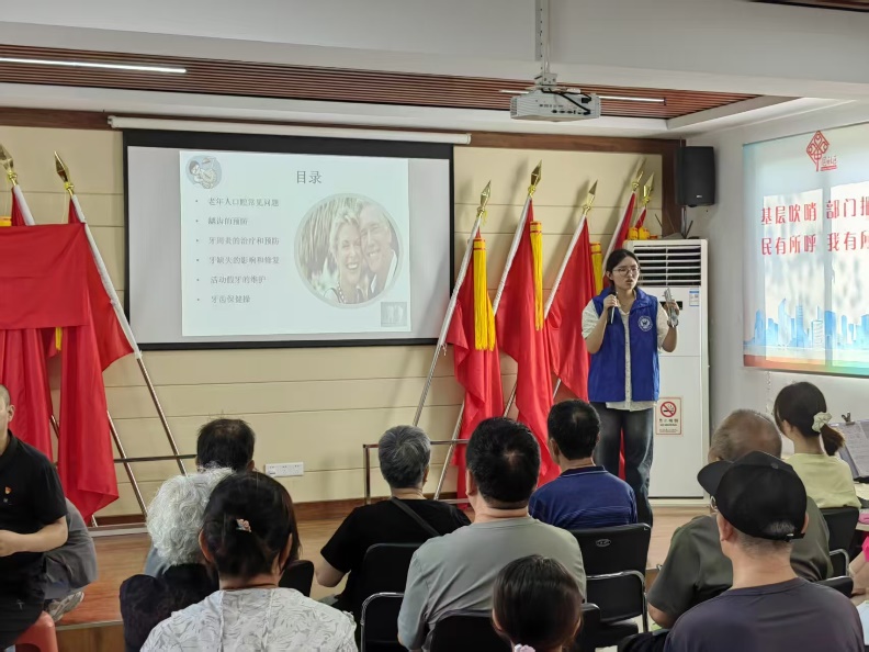 在老年活动场所,志愿者陈思钰则针对老年人常见的口腔问题,如牙周病、牙缺失等,进行了详细的讲解。她用通俗易懂的语言,为老人们介绍了牙周病的病因和治疗方法、义齿的选择与保养方法等内容,并通过实际案例分析,帮助老人们树立正确的口腔健康观念,打破了"人老掉牙"的传统认知。周负责人反馈称,活动结束后,主动要求接受口腔检查的老人比例上升了近五成。