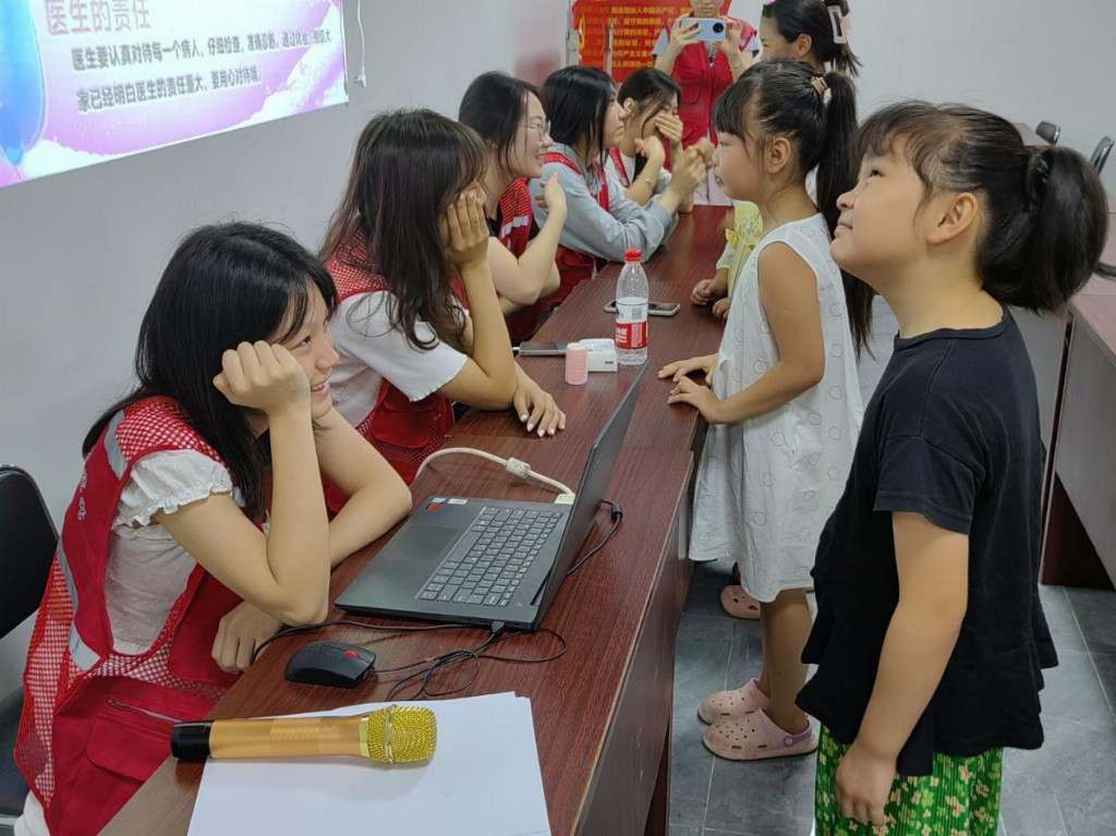 图为孩子们模拟医生问诊场景。张英杰 供图