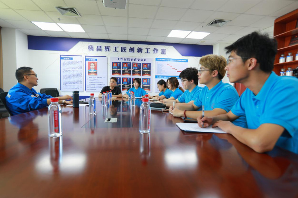 图为实践团成员在工匠创新工作室与杨昌辉开展座谈。