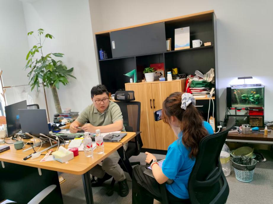 图为实践团成员在浙江大华与吴经理进行访谈。