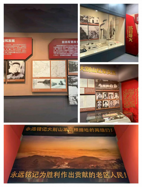 在大别山革命历史纪念馆,浓厚的历史氛围扑面而来。参观过程中,成员们驻足凝视展品,认真聆听讲解,深刻体会到革命胜利的来之不易。泛黄的战地日记、锈迹斑斑的步枪、战时使用的电台等实物展品生动还原了大别山军民“28年红旗不倒”的壮阔历程。“这里每一件文物都是一段鲜活的历史,每一道弹痕都记录着不屈的抗争。”讲解员指着一幅描绘敌后游击战的油画,向学生们讲述鄂豫皖苏区军民在艰苦卓绝的环境中,如何以 “团结奋斗、勇当前锋” 的精神坚守阵地。成员们于场馆追“抗日烽火”,在“大别山精神”墙前凝魂,听长者述往昔,睹文物忆峥嵘。重走抗战路,让红色基因,在青春步履中传承闪光,续写大别山精神新篇