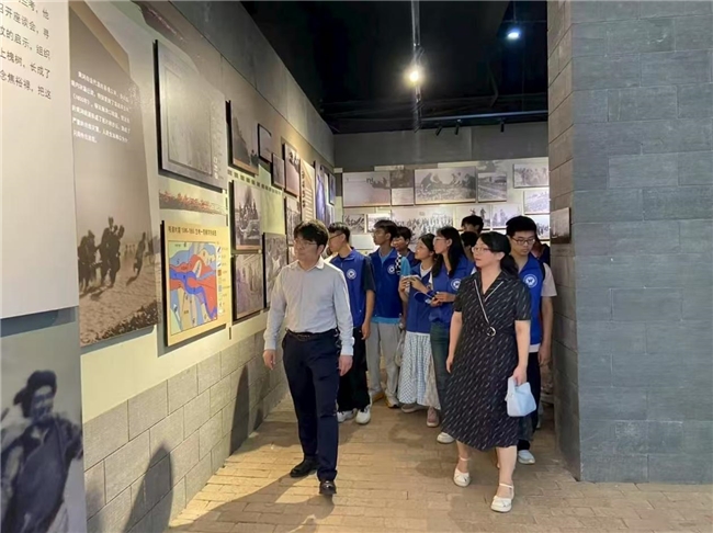 图为团队成员实践团与河南工业大学暑期实践团、由河南思政名师组成的“惠风队”参观四面红旗纪念馆一起。《豫教思学》 (李植五 供图)