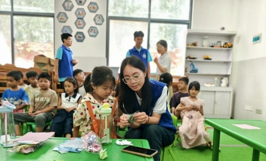 图为团队成员为孩子讲解口腔知识 (孔妍 供图)