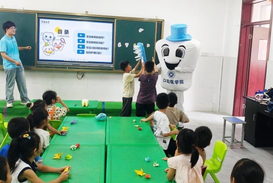 图为小朋友们积极与牙齿玩偶互动,现场气氛活跃 (刘梦瑶 供图)