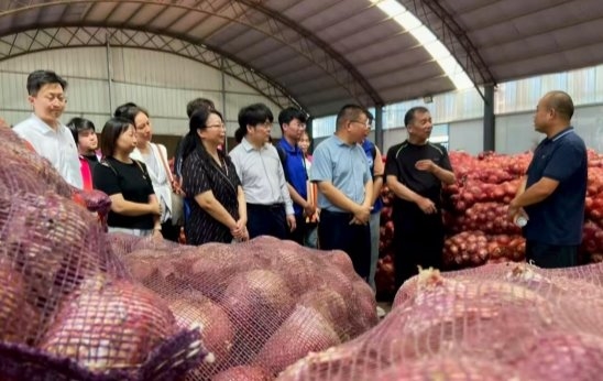 图为实践团在研修团老师带领下在张庄村产业基地进行实地调研 (贾硕 供图)