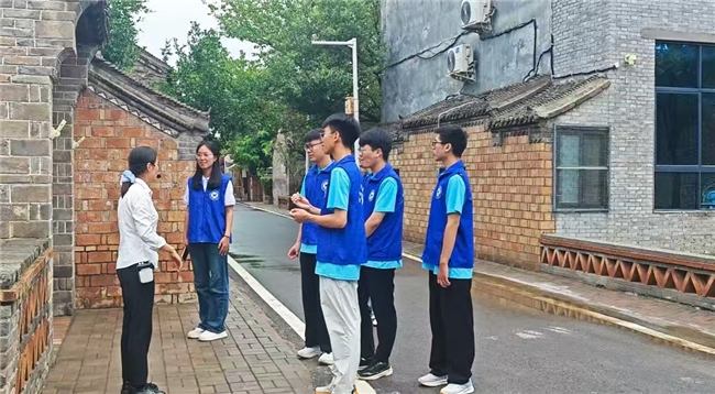 图为实践团在幸福路上聆听讲解员讲述张庄的发展历史 (常孝悌 供图)