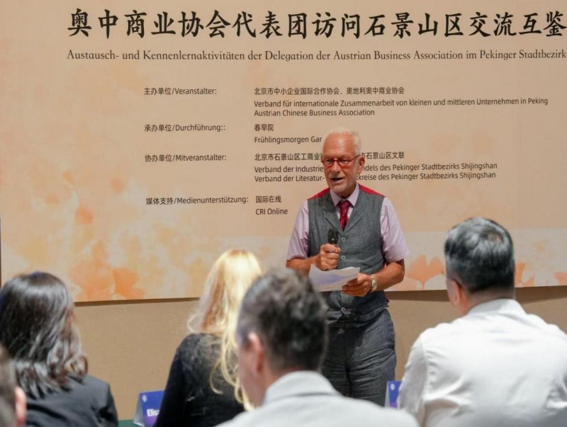 奥中商业协会主席乔治·章格感谢石景山区对奥中商业协会代表团的热情接待,他高度评价了石景山区的经济发展成就和城市治理水平,介绍了奥地利的经济发展、商业政策等情况,回顾了协会成立十五年来在各领域持续推进奥中合作的历程,并对未来不断推动与石景山区务实合作满怀期待,充满信心。
