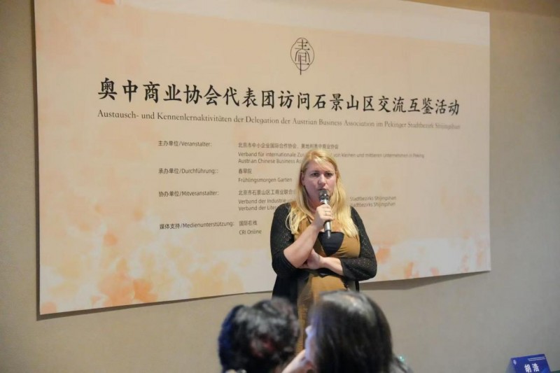 石景山区工商联党组书记、副主席斯琴介绍了工商联及商会相关情况民营企业的经营状况,并对双方的合作领域给予了展望。奥中商业协会代表团成员哈克·伊丽莎白表示,期待推动更多奥地利优秀企业与石景山区合作,并促进双方在文化、教育、市政管理等多领域交流互鉴。石景山区投促中心主任杨光、区商务局副局长霍瑄分别就投资政策、营商环境及北京服贸会的相关情况作了详细介绍。