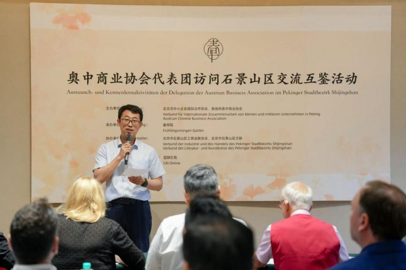 当天下午,由25名奥地利企业家组成的奥中商业协会代表团来到位于石景山的春早院茶空间。石景山区副区长胡浩对客人的到访表示欢迎,着重介绍了石景山的区位优势、特色产业以及文旅融合发展等情况,希望通过这次访问交流,进一步加深双方的友好交往,进一步拓宽双方在经贸、文化等多领域的合作交流,给双方发展带来新的机遇。