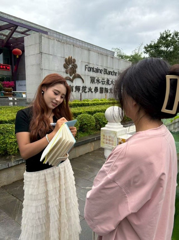 七彩云旅探察大队在游客中心调查访问游客