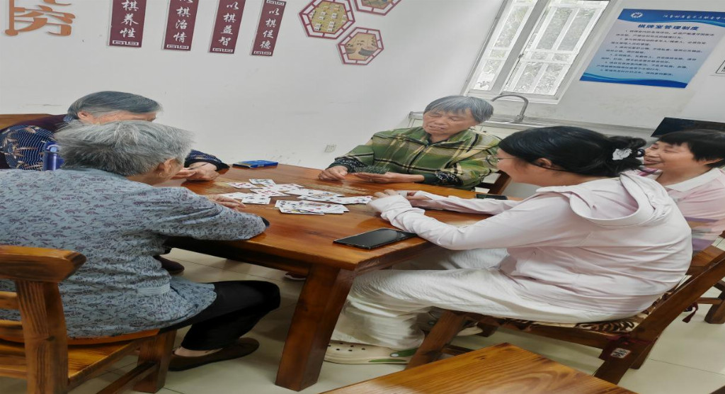 活动伊始,志愿团成员与老人围坐棋牌桌旁,开启轻松互动。老人熟练洗牌、出牌,志愿者虚心请教、默契配合,小小的棋牌成为情感纽带。现场欢声笑语不断,志愿者倾听老人讲述过往故事,从生活趣事到人生感悟,在交流中拉近代际距离,让老人感受到青春活力与关怀。