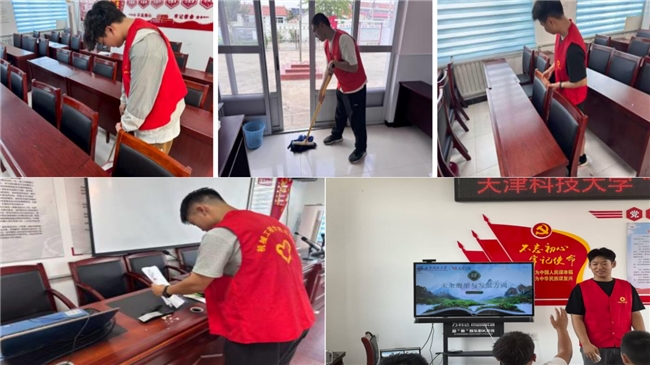 在大肖庄村党群服务中心,实践团开展了趣味十足的“绿色环保小课堂”。通过水资源实验、环保绘画等互动环节,孩子们在欢乐中学习了环保知识,明白了“保护地球就是保护自己”的道理。“关紧水龙头、随手关灯、绿色出行”等小妙招,成为孩子们争相践行的环保约定,一颗颗生态种子在童心深处悄然发芽。课堂结束之后,团队成员实践团成员拿起扫帚、抹布,全身心投入到劳动中。他们认真清扫地面尘土,仔细擦拭桌椅污渍,精心整理散落资料,用汗水换来了党群服务中心的整洁明亮。