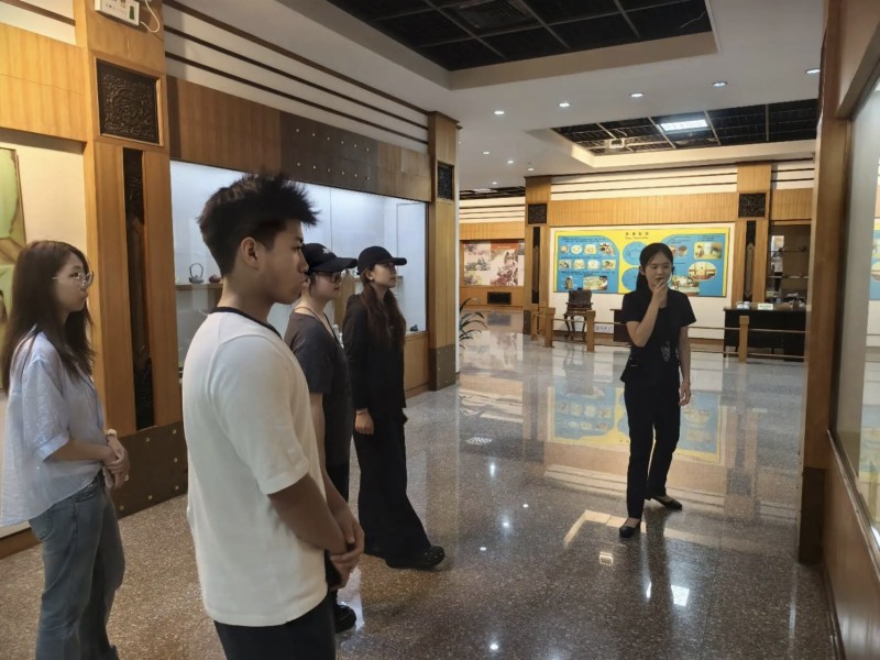 实践队于7月8日赴漳浦天福茶博物馆调研学习,开启闽南茶文化探索与教学之旅。推开天福茶博物馆厚重的木门,千年茶香扑面而来。在讲解员的引领下,队员们沿茶史长河溯源,从唐代煎茶、宋代点茶到明清散茶,透过斑驳的古茶具体悟闽南工夫茶“务实坚守”的精神内核。茶艺演示环节,队员们在专业师傅指导下研习茶器选用、水温掌控,亲历完整冲泡流程,深刻理解了“以茶会友”的闽南处世哲学。