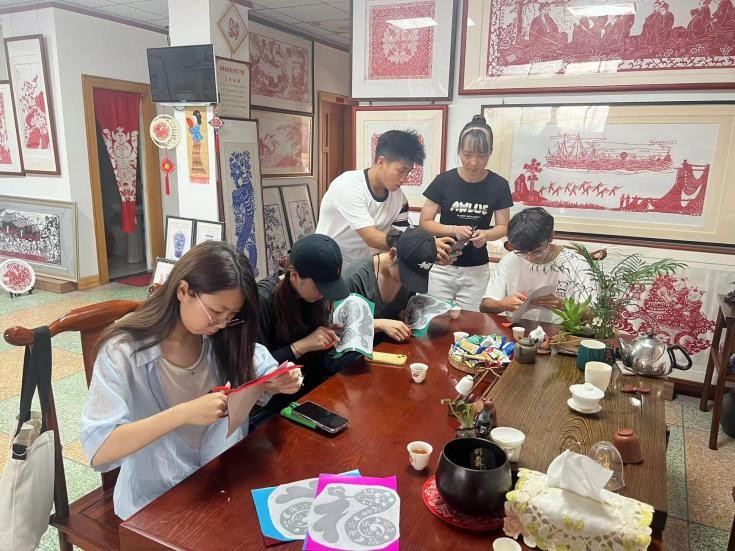 图4:实践队在陈秋日剪纸艺术馆学习漳浦剪纸 黄少婷供图