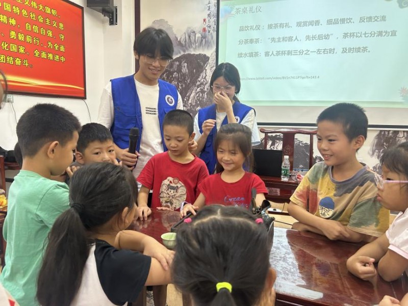 图2:志愿者为小朋友们进行茶文化讲解 方马超供图