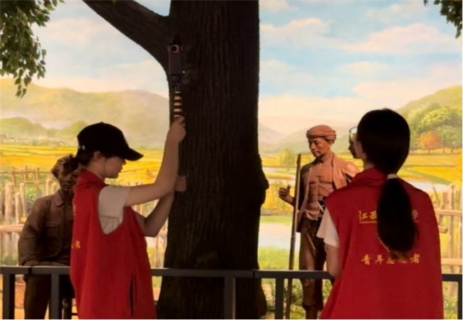 VR技术赋能实践。在三湾改编纪念馆,队员们深入学习三湾改编史实后,运用VR设备对纪念馆进行全景拍摄和数据采集,着手制作全景导览系统,清晰呈现纪念馆的展陈布局与历史场景细节,为无法亲临现场的观众提供线上沉浸式参观的途径。实践团成员们沿着红色文化墙漫步红军步道——斑驳墙面上,“支部建在连上”“士兵委员会选举”“军民共饮一缸水”等革命浮雕生动再现历史场景。队员们用镜头记录细节,将红色故事转化为可传播的影像素材。湘赣古驿道的青石板保留着当年行军路线的走向,脚下的每一步都似与革命历史对话,让“党指挥枪” 的精神在实地研学中愈发清晰。