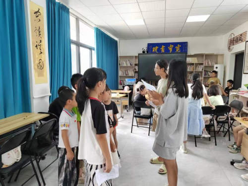 越来越洪亮,节奏也越来越整齐划一。有孩子翻箱倒柜,主动把家里老旧的蒲扇、褪色的蓝印花布带到排练场。“这样拿在手里,感觉一下子就回到老故事里了!”一个小姑娘兴奋地展示着手中的“道具”。这些带着生活气息的老物件,无形中增添了历史的厚重感。为避开酷暑,老师让大家先在教室熟记台词,再到室外合练。小胖即使汗流浃背,也坚持说完自己的台词,耐心等待同伴,毫无怨言。所有人都在为同一个目标全力以赴。
