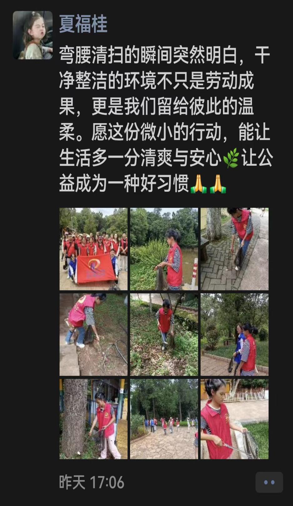 还有同学在志愿结束后发文感慨:“弯腰清扫的瞬间突然明白,干净整洁的环境不只是劳动成果,更是我们留给彼此的温柔。愿这份微小的行动,能让生活多一分清爽与安心让公益成为一种好习惯。”