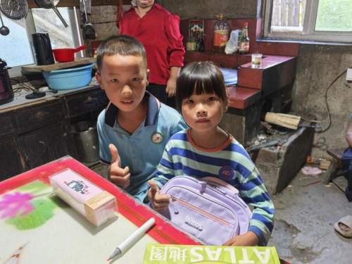 在狭窄的农家厨房里,志愿者们与孩子们围坐在木桌旁。阳光透过斑驳的窗棂洒在孩子们纯真的脸庞上,映照出他们眼中闪烁的求知欲。从“爱的教育”到世界地理,从天文科普到星空的奥秘,志愿者们的讲述声温柔而富有感染力。孩子们时而凝神倾听,时而踊跃提问,空气中弥漫着浓厚的学习氛围。