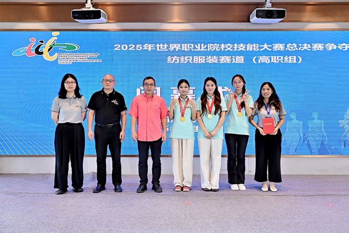 苏州经贸职业技术学院纺织服装与艺术传媒学院唐瑶、王子涵、瞿文艳三位同学,凭借卓越的综合技能、创新表现与团队协作,勇夺该赛道团队赛项金奖!这是大赛将“纺织品检验与贸易”与“服装创意设计与工艺”两个赛项合并为“纺织服装赛道”团队赛后,我校首次斩获该项团体最高荣誉,实现历史性突破。