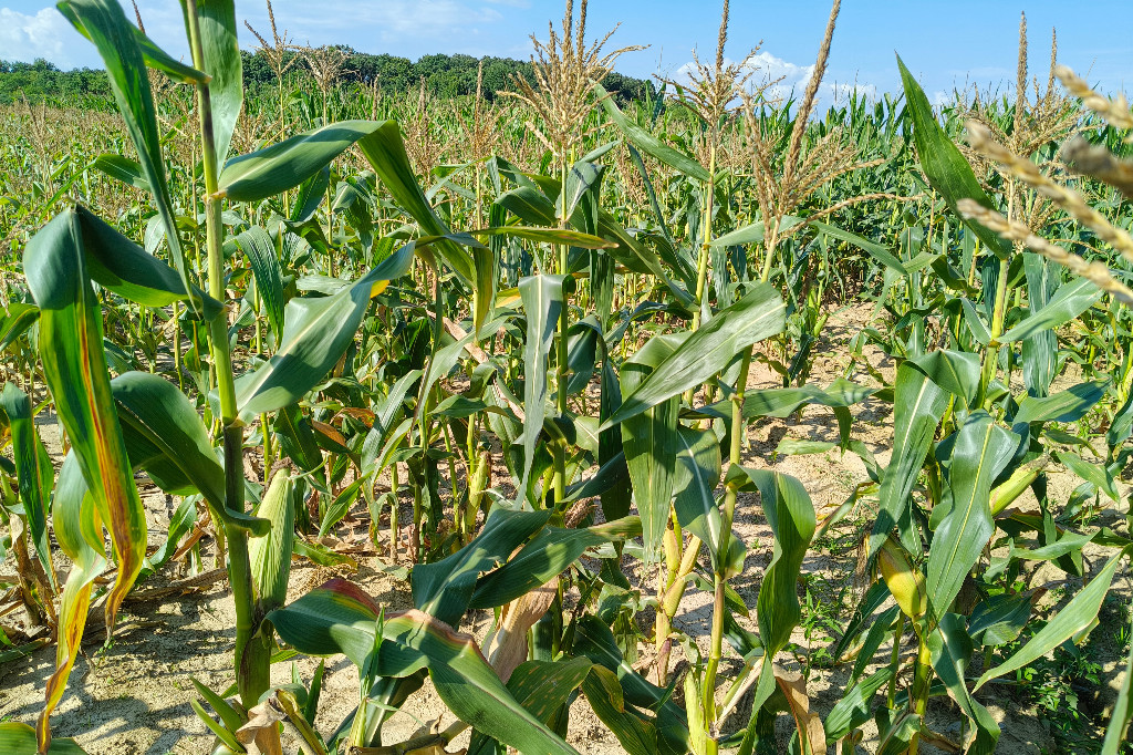 实践首日,队员们走进广阔的玉米种植基地。在何德斌经理的指引下,大家仔细观察了不同品种玉米的生长特性。田间,队员们还辨识了玉米叶斑病、枯黄等症状,了解了常规防治措施。更令人触动的是持续高温干旱带来的影响:部分地块玉米植株矮小、叶片枯黄卷曲甚至枯死,未成熟的玉米穗干瘪变形,直观展现了极端天气对农业生产的严峻挑战。