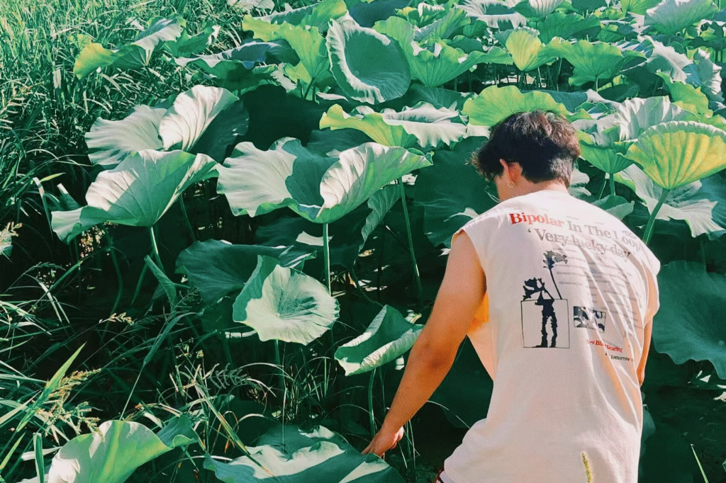 实践团队队员张高鹏宇体验莲蓬采摘 龚学凯摄