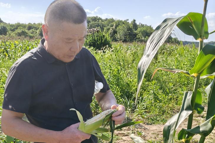 公司负责人何德斌讲述玉米生长情况 岑永宣摄