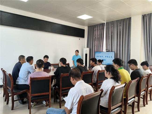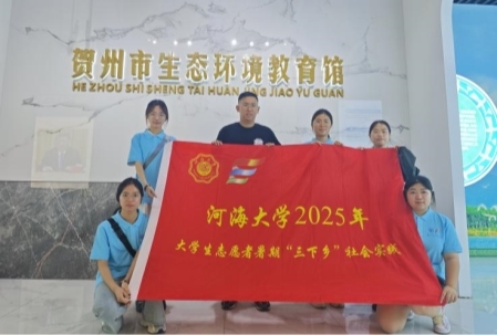 7月22日,实践团首站前往贺州市水利局,与工作人员就贺州市水网调度机制、水源地保护实践进行了座谈。通过此次座谈,挖掘地方治水“智慧”,梳理调研感悟与经验,为成果转化奠定基础。随后,实践团转至贺州市生态环境局,与相关领导进行交流,明确生态保护与水网建设的协同逻辑。在相关工作人员的引领下,实践团参观了生态环境科普宣传基地,直观了解生态保护成果,为膜材应用与水生态保护的融合寻找“灵感”,推动理论知识与实践场景深度融合。