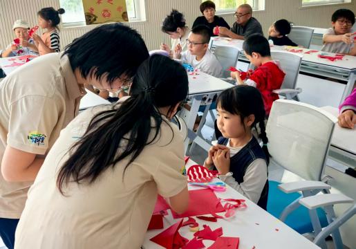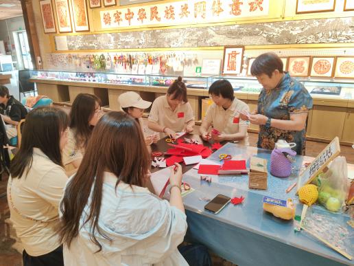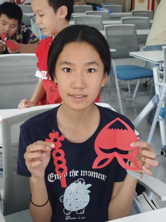 小朋友们投身剪纸绘制,红纸在指尖翻转、剪刀灵动游走,剪出灵动图案。从简单纹样到创意造型,他们在实践中体悟剪纸“千刻不落、万剪不断”的技艺精髓,感受非遗传承的匠心。每一张剪纸作品,都是童心与非遗的对话,让剪纸这一古老技艺,在新一代手中延续活力,以纯真视角传承文化根脉。
