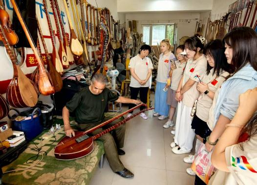 8月19日下午,非遗传承·丝路筑梦”暑期三下乡社会实践团队走进了非遗剪纸传承人杨爱凤与民间乐器制作传承人艾力·买合苏木的工作室。杨爱凤老师工作室里,各色剪纸作品琳琅满目,从传统“福字团花”到融入现代审美的创作,她以“剪心”坚守,让剪纸艺术焕发新活力,我们也现场学剪枫叶与“囍”字;艾力·买合苏木老师的乐器工坊,摆满木料与半成品乐器,他作为家族技艺第四代传人,精研选材、制作工序,改良乐器结构,现场弹奏传递民间音乐独特韵律。两位传承人的坚守,让非遗技艺在时光中焕发生机。