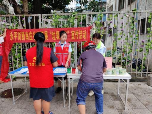 活动现场,社区工作人员和志愿者们早早布置好场地。红色的宣传横幅十分醒目,上面写着“永平街新南庄社区开展‘垃圾分类’宣传活动”。工作人员和身着红色志愿者服的党员先锋队成员们热情高涨,他们通过摆放宣传展板、发放宣传资料等方式,向居民详细讲解垃圾分类的重要性和具体方法。