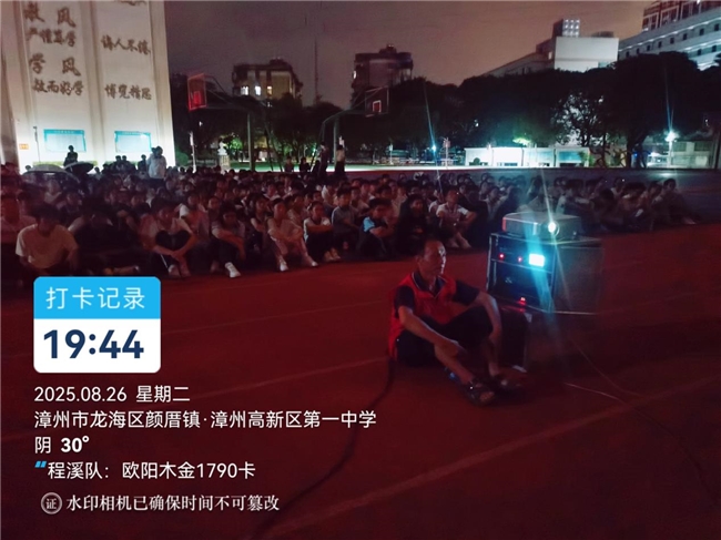 ——记龙海程溪镇放映人欧阳木金走进漳州高新区一中展映抗战胜利80周年影片