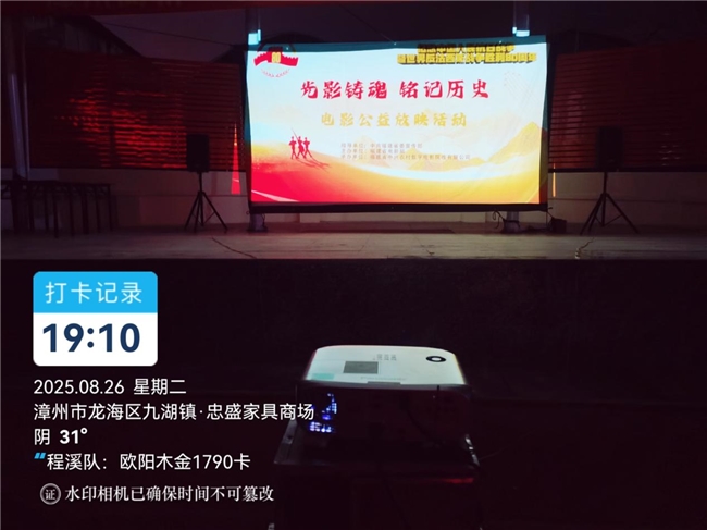 他的身影背后,是一场轰轰烈烈的“抗战胜利80周年公益放映活动”。截至目前,欧阳木金及其团队已覆盖漳州高新区61个行政村和程溪镇20个行政村(注:高新区原62村中南星村已改为社区,现辖61村),共计81个行政村,将抗战故事与英雄赞歌送入千家万户。