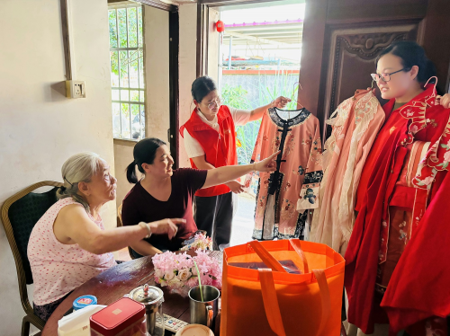 “这辈子没戴过这么俏的花,七夕倒成了老姑娘的节日了!”接过志愿者递来的簪花,80岁的郑阿嬷开心地别在发髻上。看着镜子里缀着鲜花与银饰的自己,阿嬷笑得眼睛眯成了缝,脸上的皱纹也跟着绽开了,“有在电视里看过蟳埔女戴簪花,没想到现在我也能有一个,这节过得比什么都甜!”这天,志愿者们还陪阿嬷们聊起当地七夕“乞巧”的旧俗,帮她整理院子里的盆栽,闽南地区特有的头北家常话与笑声交织,让冷清的小屋瞬间充满了节日的热闹与温情。